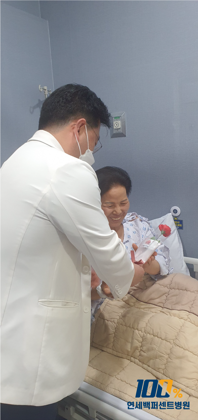 연세백퍼센트병원은 어버이날을 기념하여 8일 환우분들께 카네이션을 선물하였습니다.