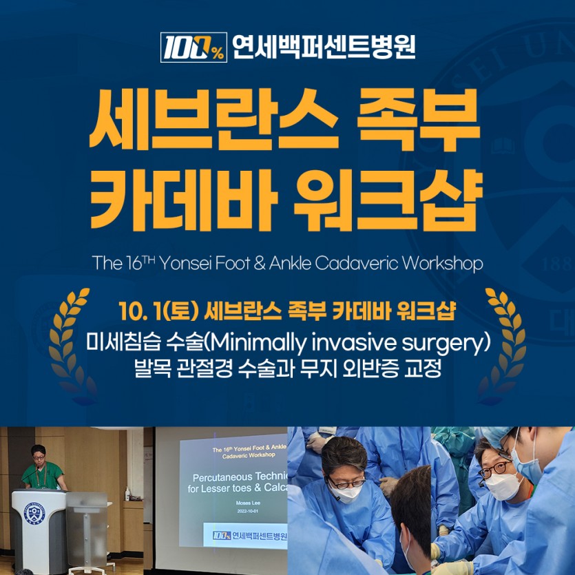 10월 1일(토), 연세백퍼센트병원 이모세 대표원장이 연세대학교 의과대학 수술해부교육센터에서 진행된 The 16th Yonsei Foot & Ankle Cadaveric Workshop에서 강의 및 수술시연을 진행했습니다.