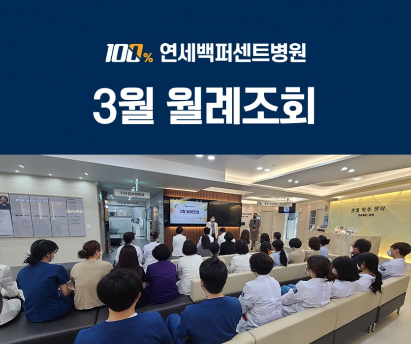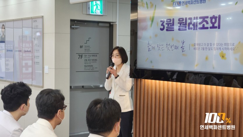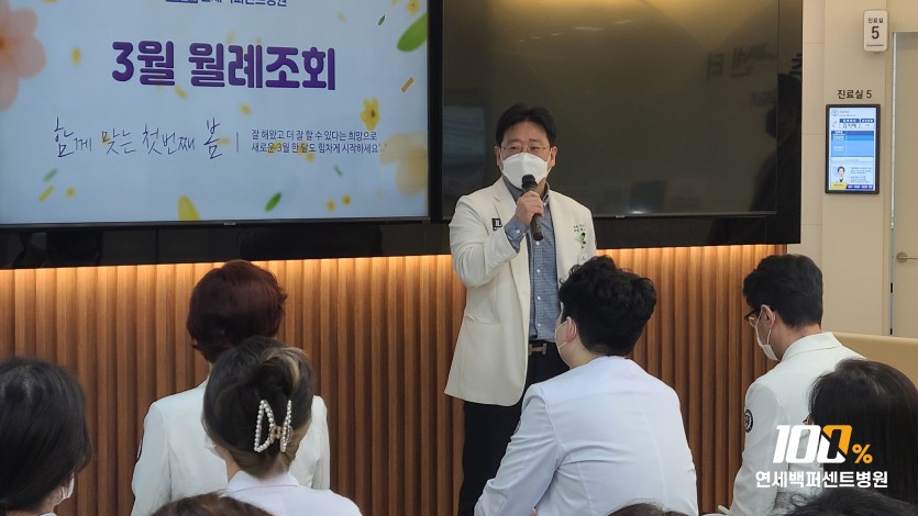 봄이 시작되는 3월, 부쩍 따뜻해진 날씨처럼 항상 따뜻한 마음으로 환자 분들에게 더 친절하게 다가갈 수 있도록 노력하는 연세백퍼센트병원이 되겠습니다.