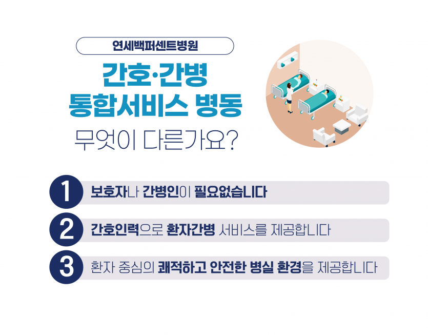 연세백퍼센트병원이 간호·간병통합서비스를 시작합니다.