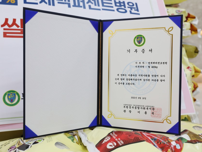 연세백퍼센트병원은 앞으로도 지역 사회 주민들을 위한 다양한 기부 및 후원 활동을 꾸준히 이어나갈 것을 약속드립니다.