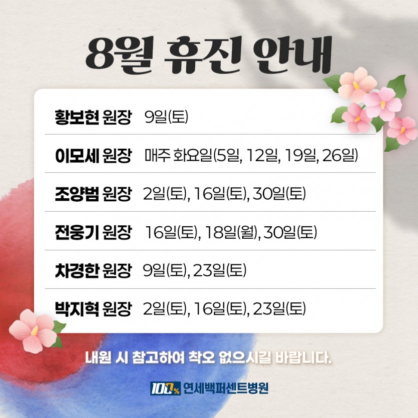 일정 참고하시어 내원에 착오 없으시길 바랍니다.