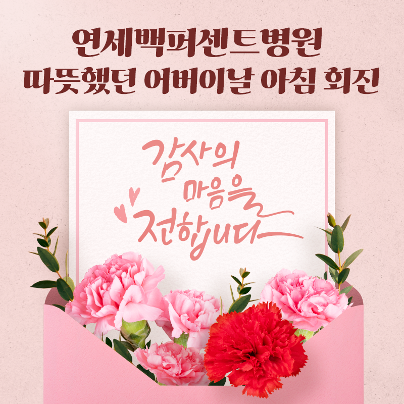 5월 8일, 어버이날! 매년 이 날은 부모님께 감사한 마음을 표현하는 날입니다. 올해도 연세백퍼센트병원에서는 그 특별한 날을 더욱 따뜻하게 만들기 위해 준비했습니다.