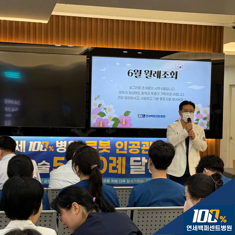 싱그러운 초여름의 6월! 연세백퍼센트병원은 월례조회로 새로운 한 달의 시작을 힘차게 열었습니다~