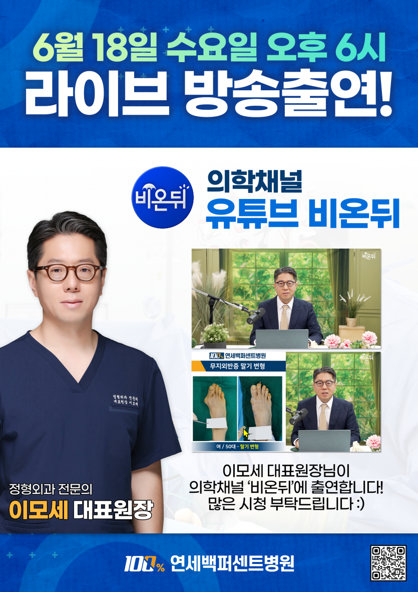 [6월 18일 오후 6시] 이모세 대표원장 유튜브 라이브 의학채널 '비온뒤' 방송 출연!