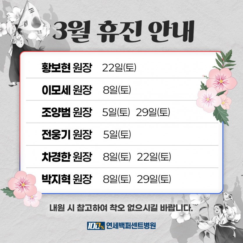 3월 진료 및 휴진 안내