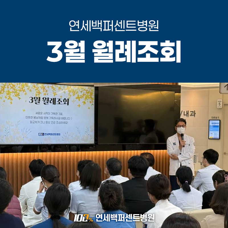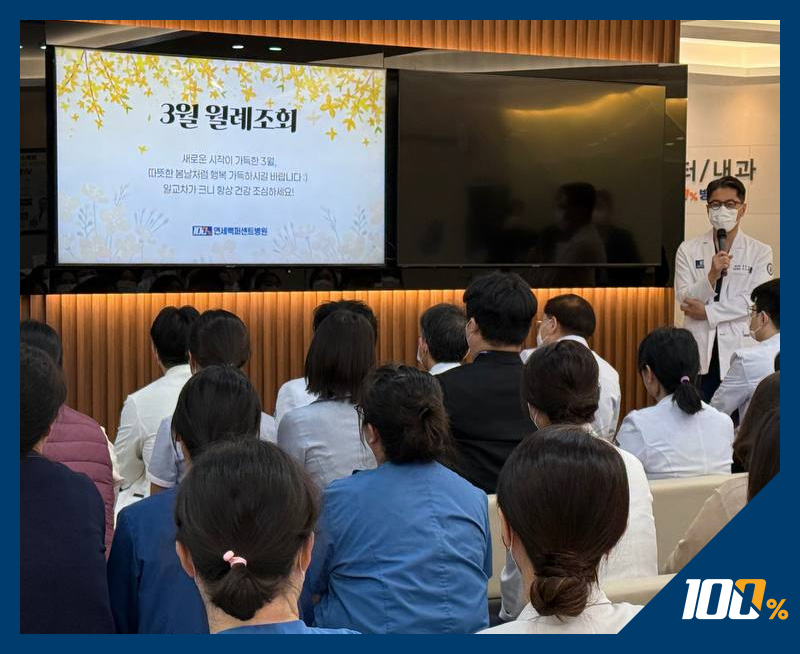 새로운 계절을 맞이하며 연세백퍼센트병원도 화기애애한 분위기 속 월례조회가 진행되었습니다.