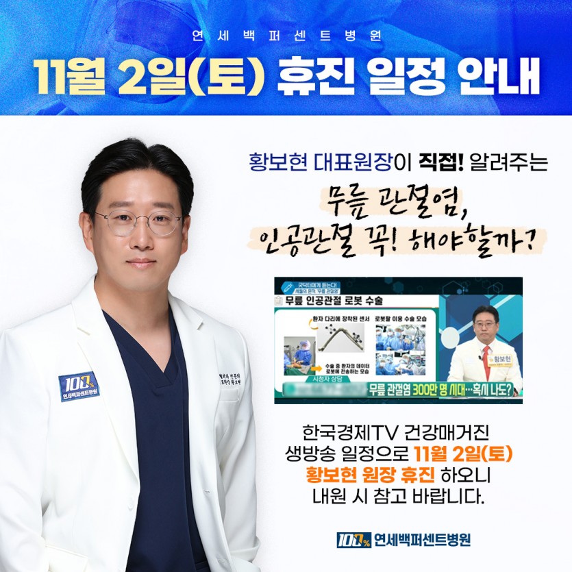 11월 2일 토요일 황보현 원장님 휴진 안내