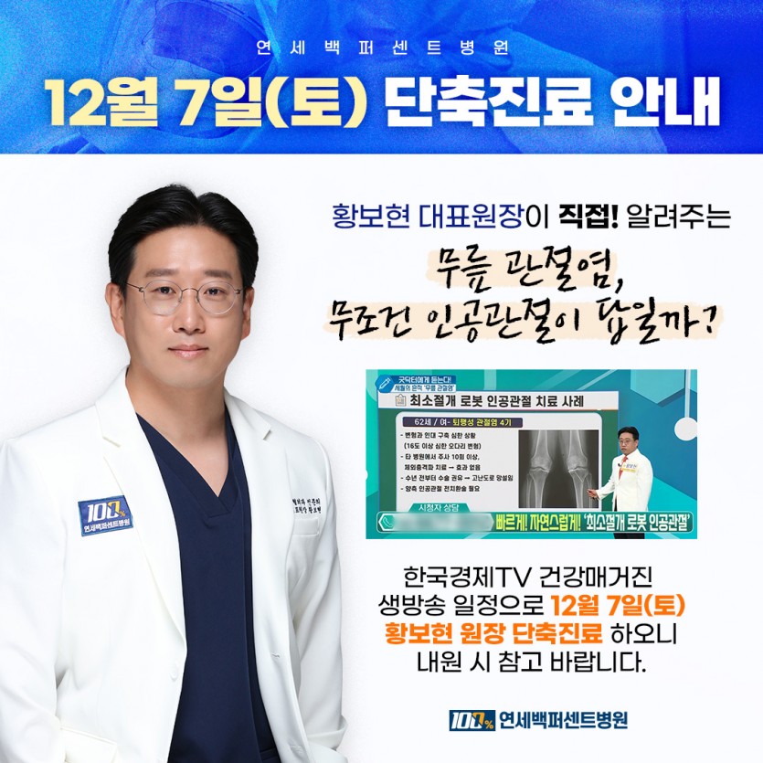 황보현 원장님께서 한국경제TV [건강매거진] 12월 7일 토요일 생방송 출연으로 단축진료합니다.
