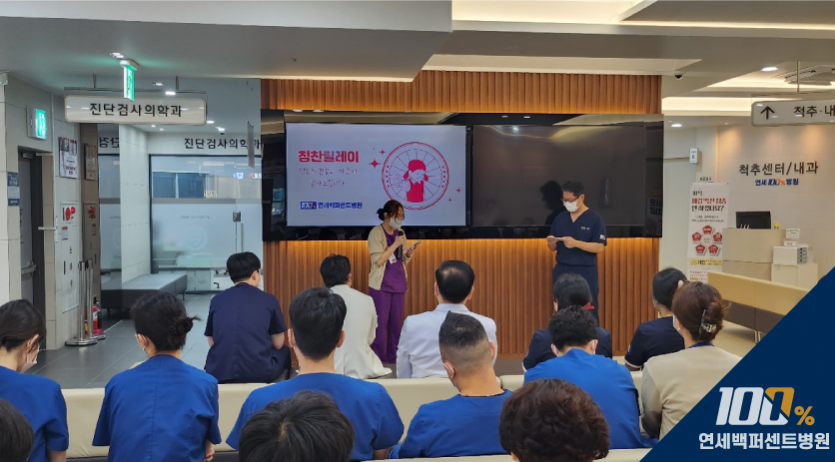 마지막으로 연세백퍼센트병원을 찾아주시는 모든 분들에게 최상의 서비스를 제공하기 위해 CS교육도 진행하였습니다.