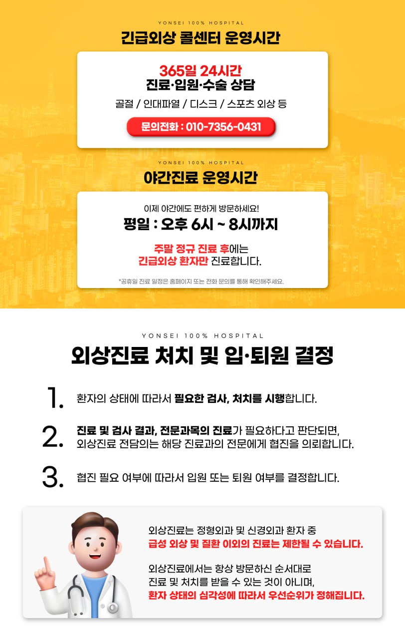 골절, 인대파열, 디스크, 스포츠 외상 365일 24시간 긴급외상진료 가능합니다.