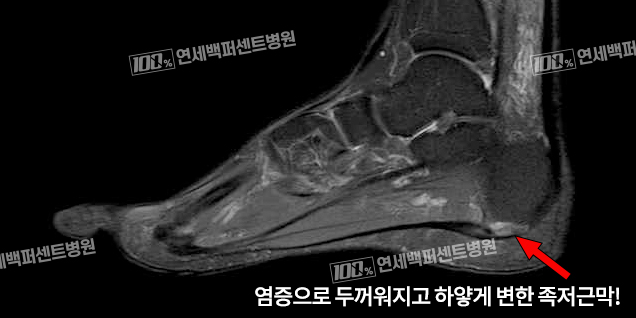 이 족저근막에 이상이 생겨 발바닥에 통증이 생기는 질환을 족저근막염이라고 합니다.