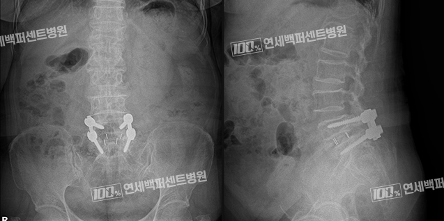 수술용 나사를 이용해 전위를 고정하고 척추뼈 사이를 고정하는 수술입니다.