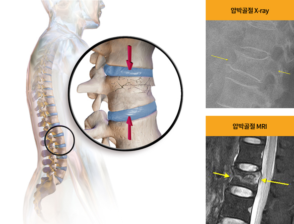 외부 충격에 의해 또는 약해진 척추뼈가 골다공증에 의해 주저앉아