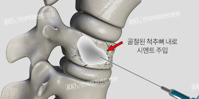 특수 골시멘트를 채워 골절된 척추뼈를 튼튼하게 고정하는 치료법