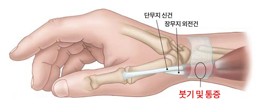 손을 과도하게 사용하면 힘줄 주변에 염증이 생기고 통증을 일으키게 됩니다.