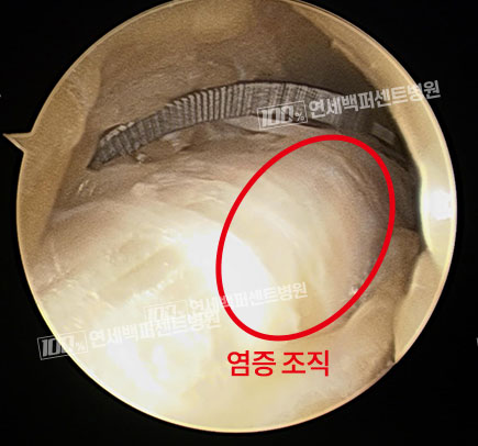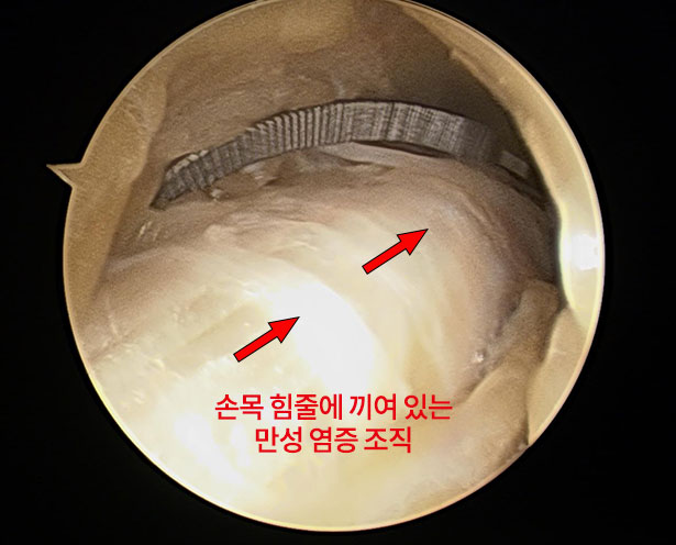 염증으로 두꺼워진 힘줄막 복원 + 만성 염증 조직 변연 절제술 동시 시행으로 완치율 UP!