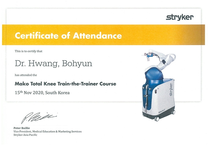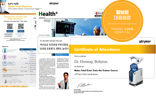 마코 로봇수술은 황보현 대표원장에게 교육과 인증을 받은 의사만 시행할 수 있습니다.